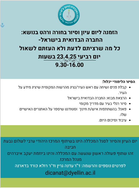 לפרטים נוספים והרשמה: ד״ר ענת גרין וד״ר רולא כורד באדאנה