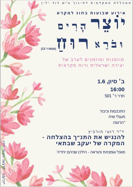 החוג למקרא שמח להזמינכם לאירוע שבועות בחוג למקרא